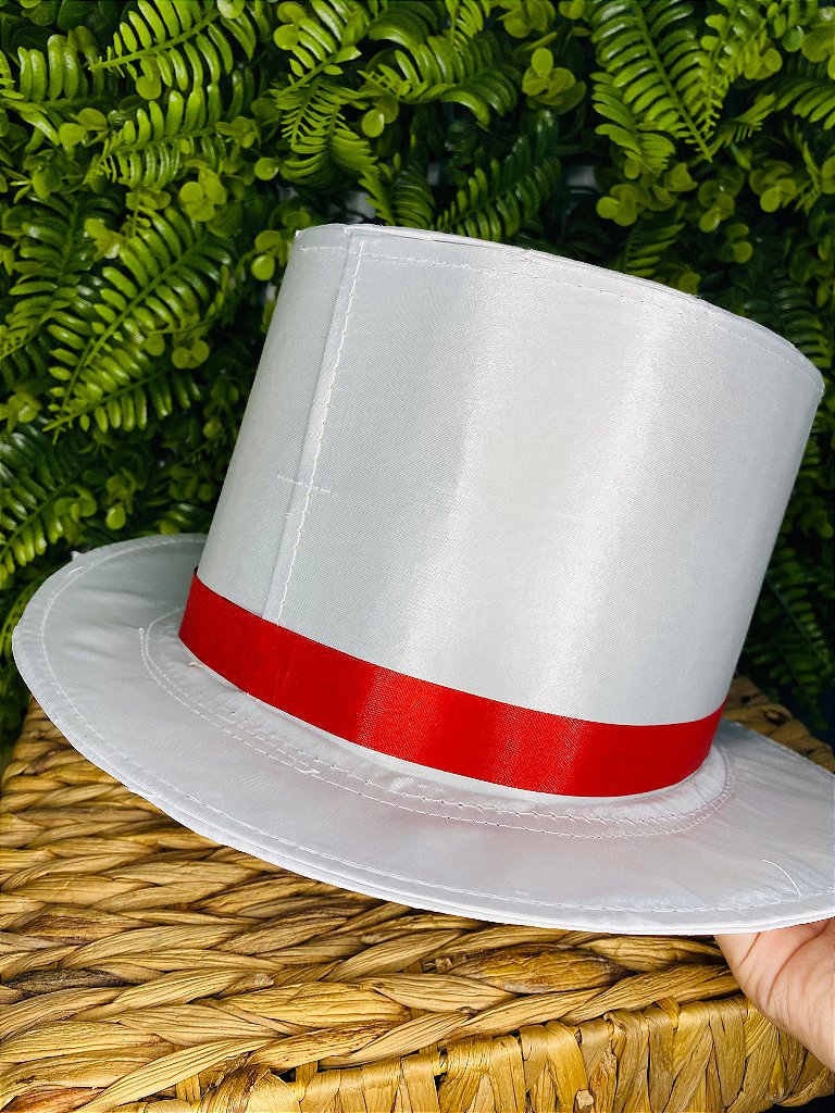 CARTOLA DE CETIM ALTA - BRANCA/FITA VERM