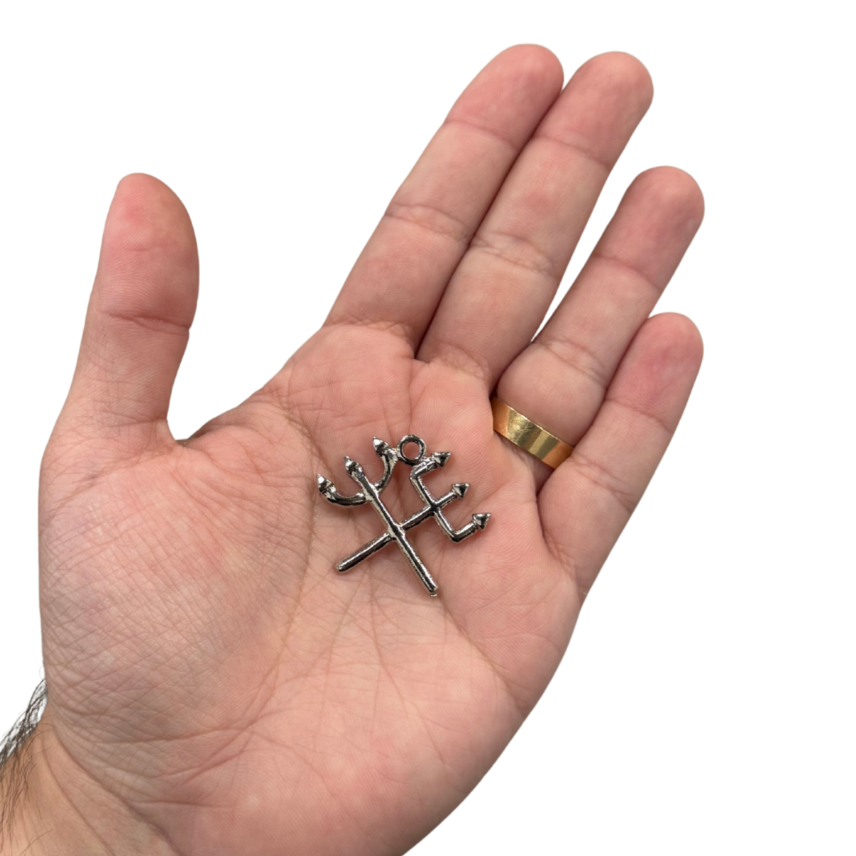 PINGENTE TRIDENTE DE EXU E POMBA GIRA PRATEADO